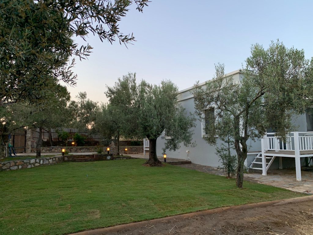 3,5 dönümlük bahçemizde 95 adet zeytin ağacımız ve çeşitli mevye ağaçları bulunmaktadır. Bahçemizde keyiflice vakit geçirebileceğiniz ve dinlenebileceğiniz alanlarımız mevcuttur. İsterseniz kendinize özel terasınızda, isterseniz ortak kullanım alanlarımızda keyiflice vakit geçirebilirsiniz.